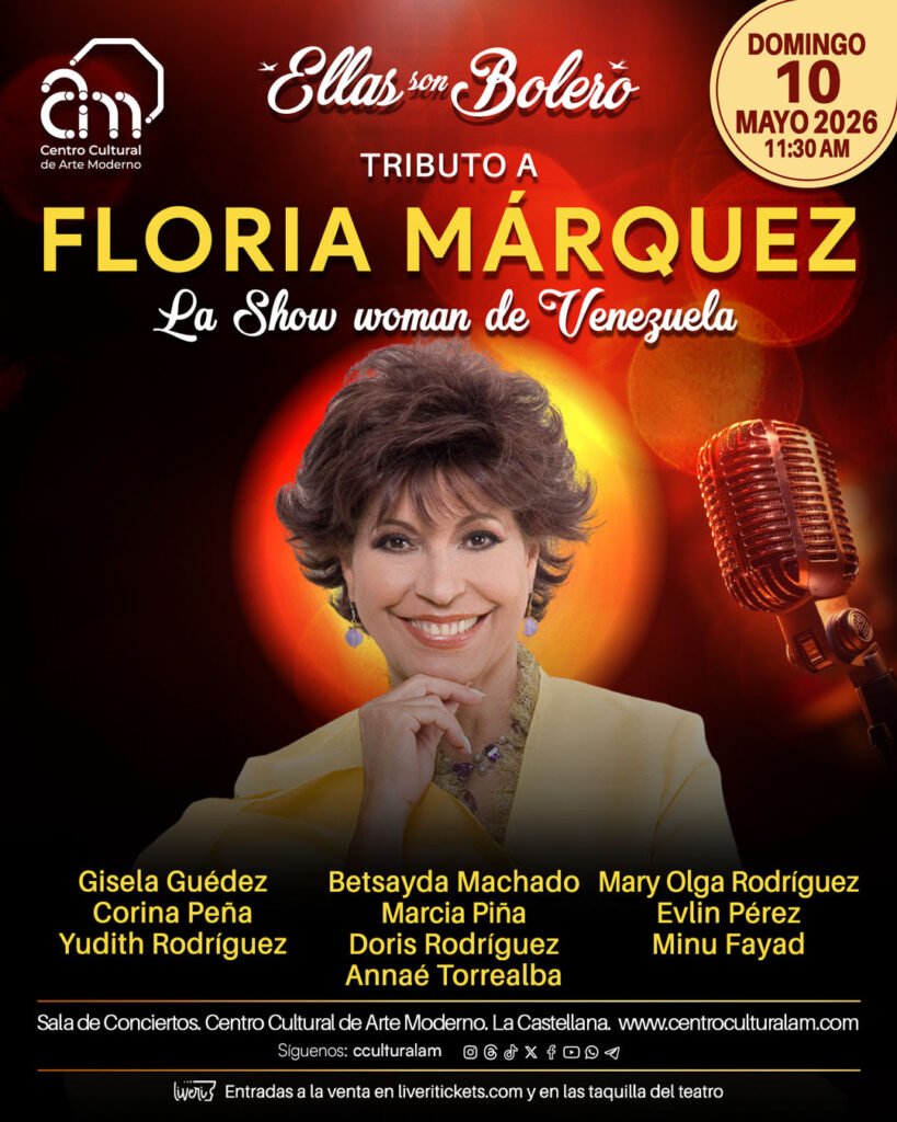 Las entradas para esta función única de Ellas son bolero: Tributo a Floria Márquez, regalo perfecto para las madres y para todo aquel que disfrute escuchando estos clásicos; ya se encuentran a la venta a través del portal liveritickets.com y en las taquillas de Cinex. También pueden adquirirse en el Centro  Cultural de Arte Moderno, en La Castellana, abiertas de jueves a domingo de 11:00 a.m. a 5:00 p.m.